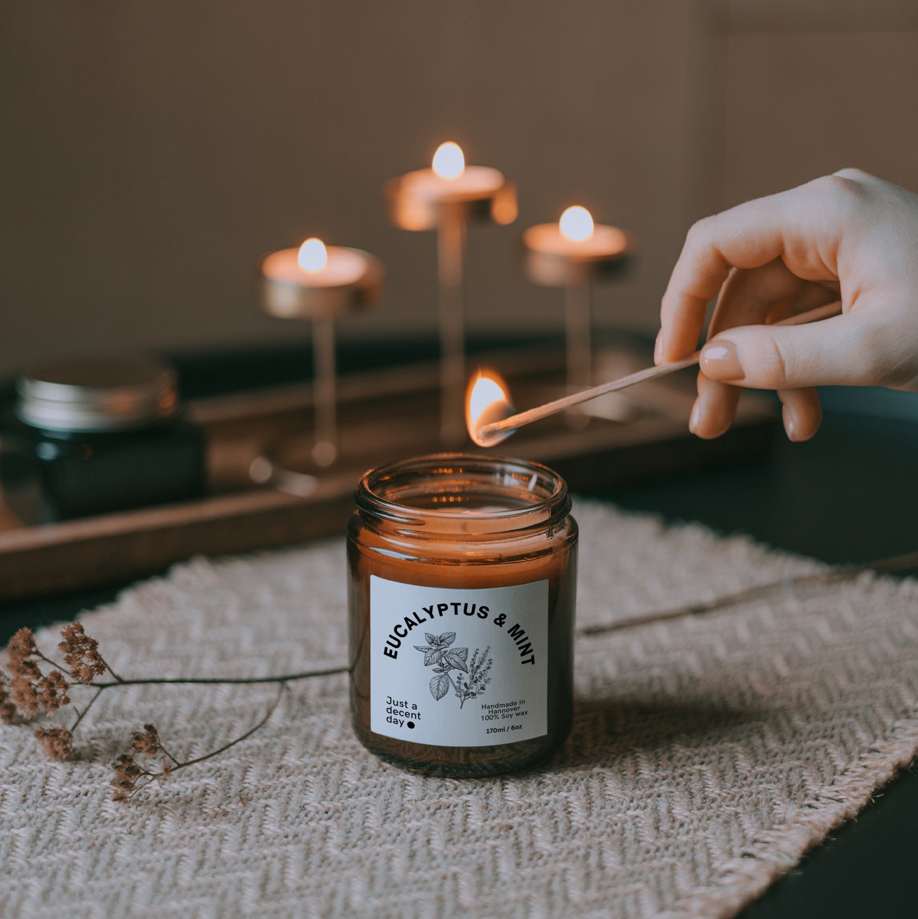 • Verpackung: Recycelbares Glas mit Deckel – verschließbar, um den Duft langanhaltend zu bewahren.
