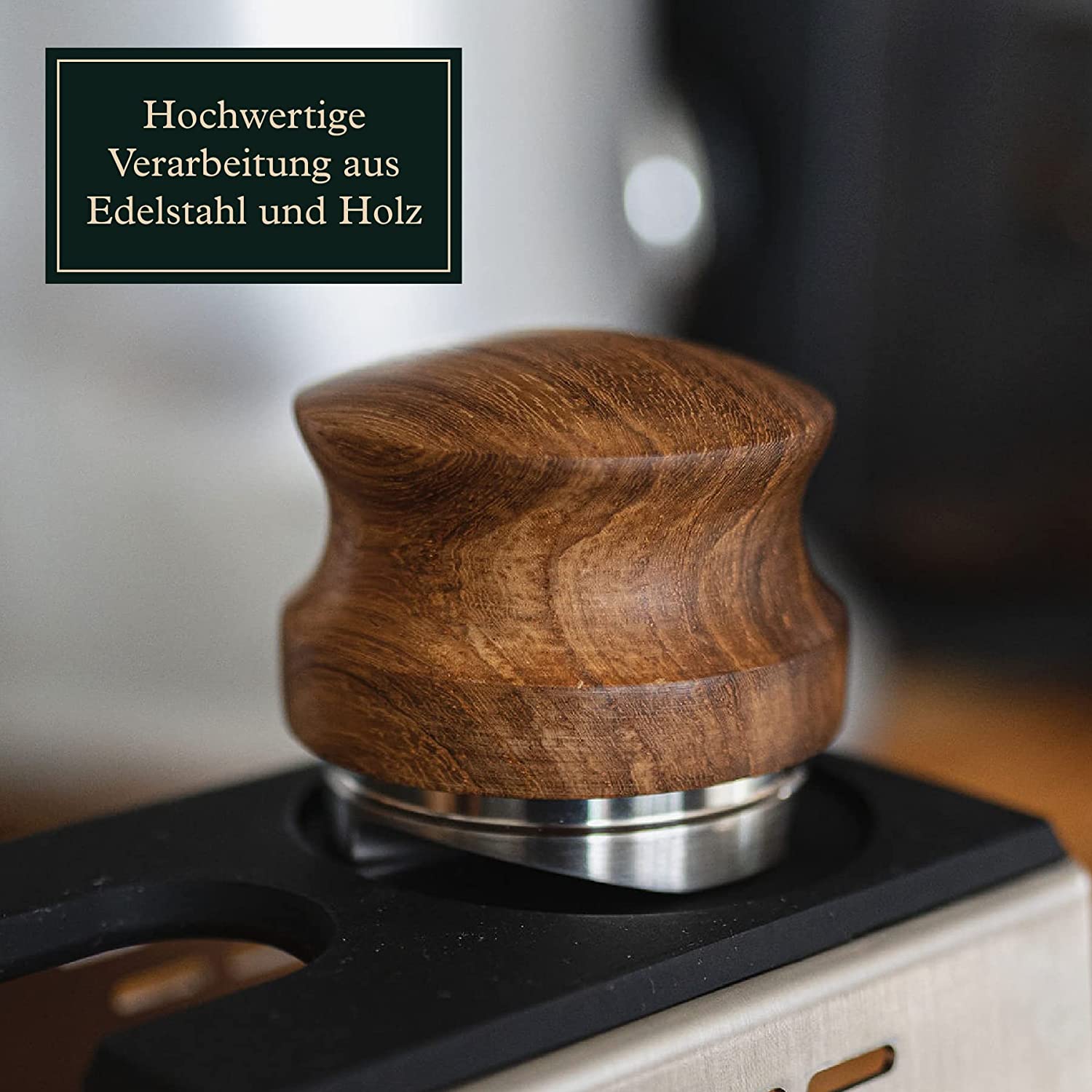 Tamper Set für Siebträger - Design Espresso-Stempel mit Holzgriff inkl. Ablage - 51 mm