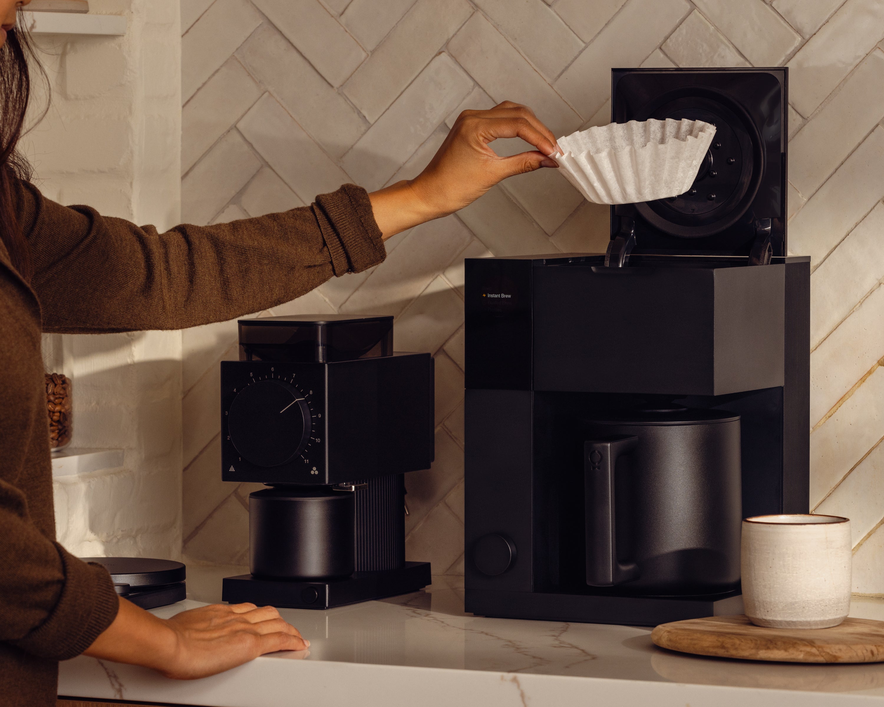 - Contenu de la livraison : machine à café Fellow Aiden, comprenant 15 filtres standards (taille 2), 15 filtres à fond plat (taille 8-12)