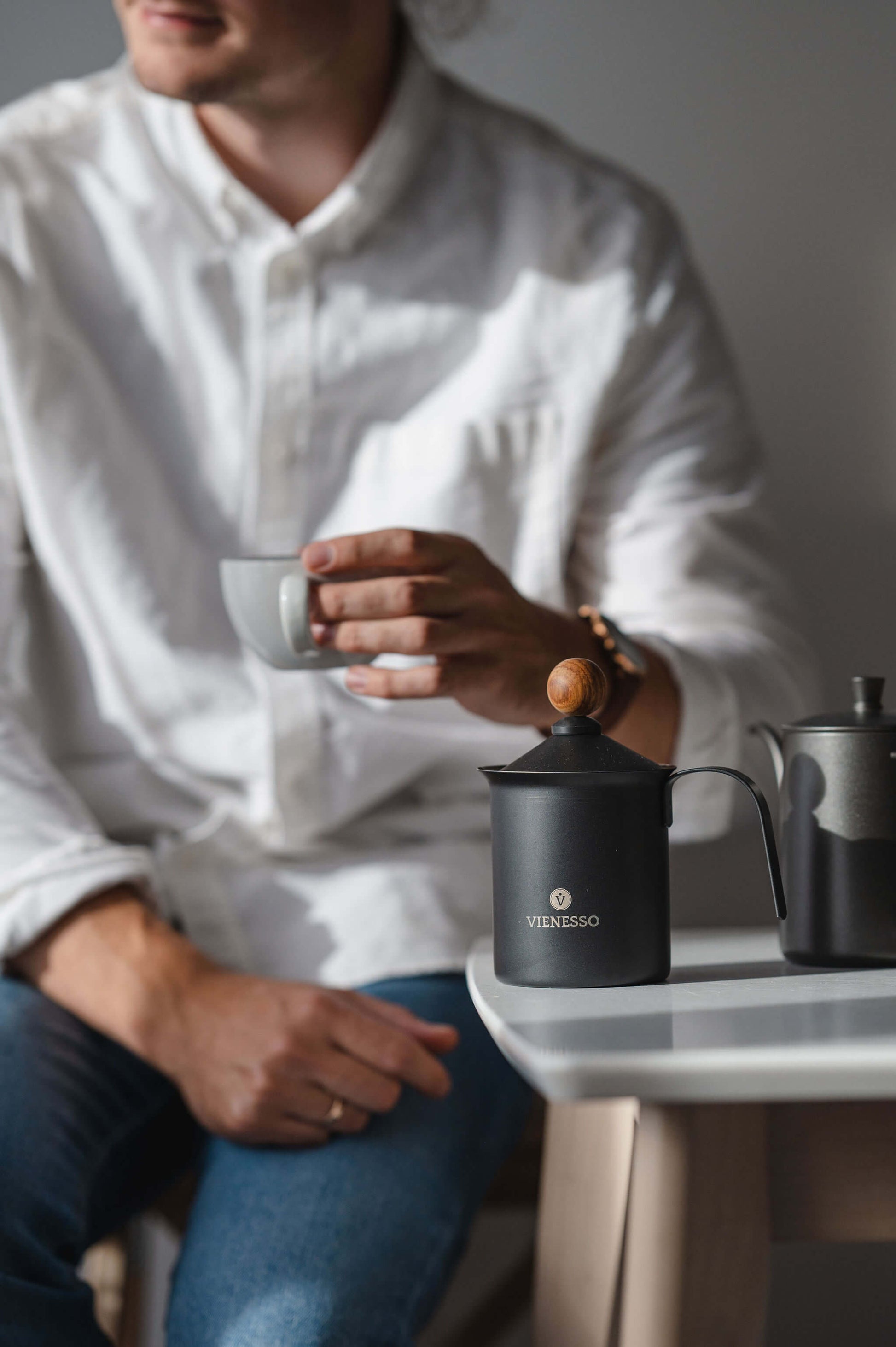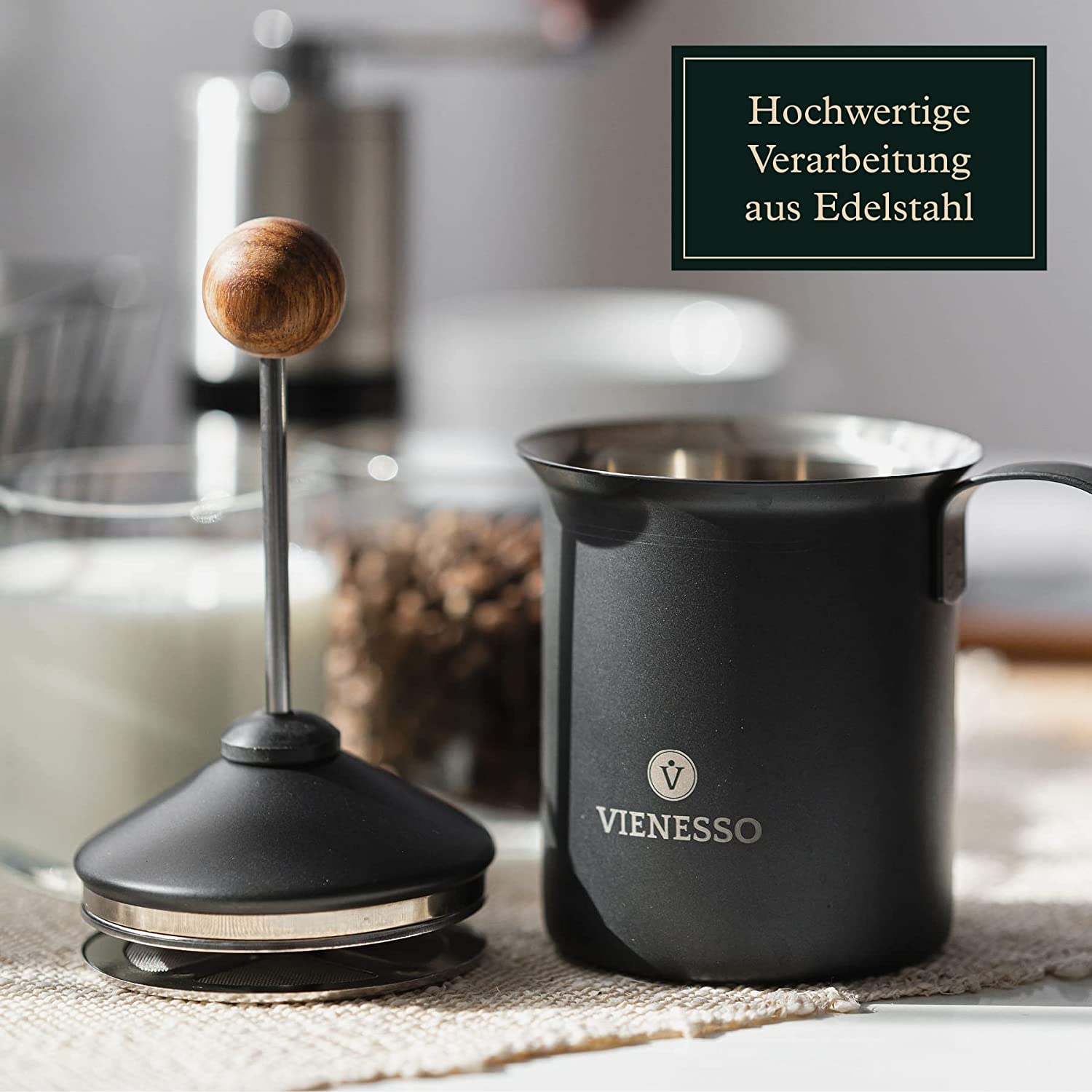 Klasse Flexibilität: Der Milk-Frother funktioniert kalt und warm und mit allen Arten von Milch - verwenden Sie den VIENESSO Milchschäumer mit Vollmilch, Magermilch, Mandelmilch, Sojamilch, Kokosmilch, Ziegenmilch u.a.