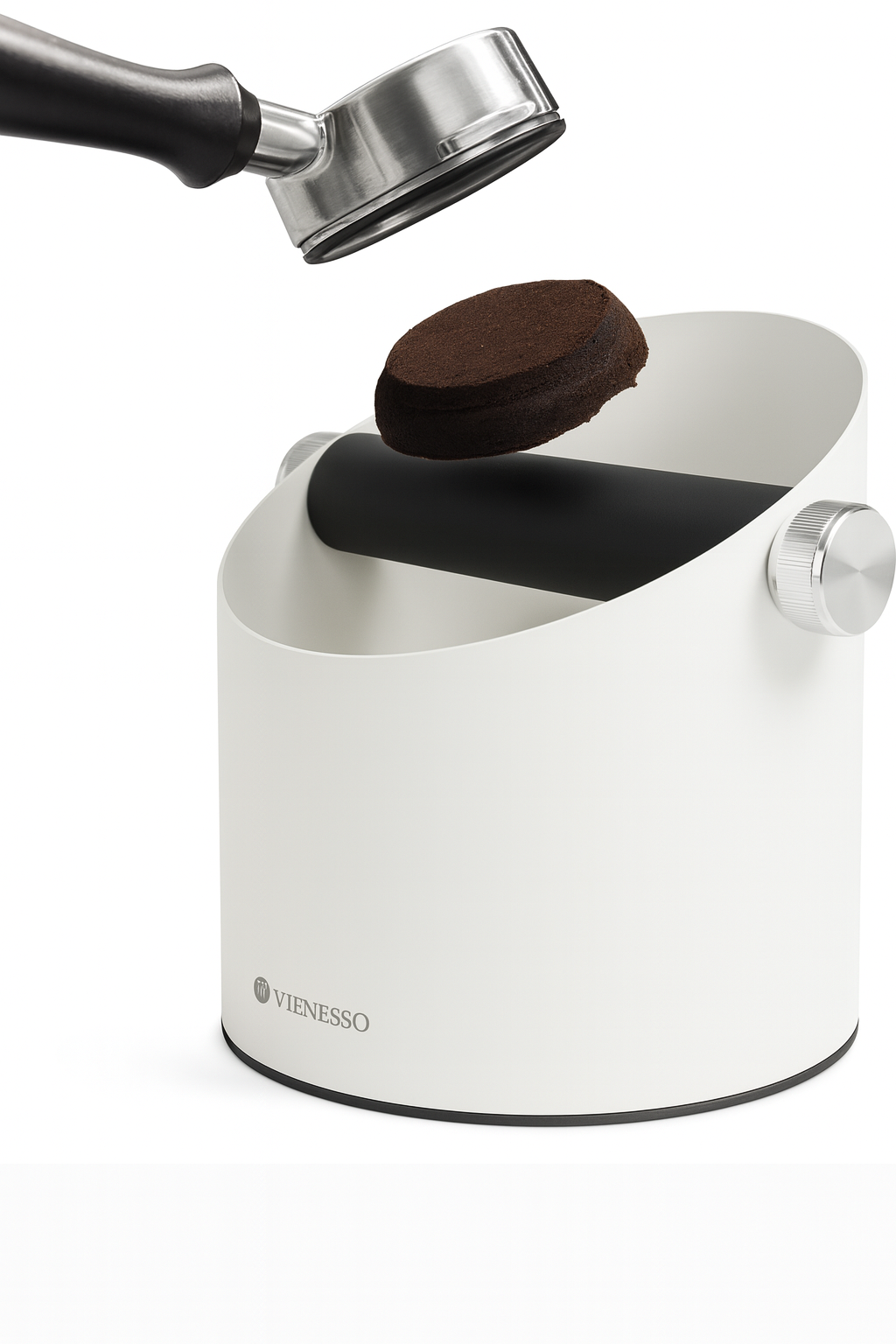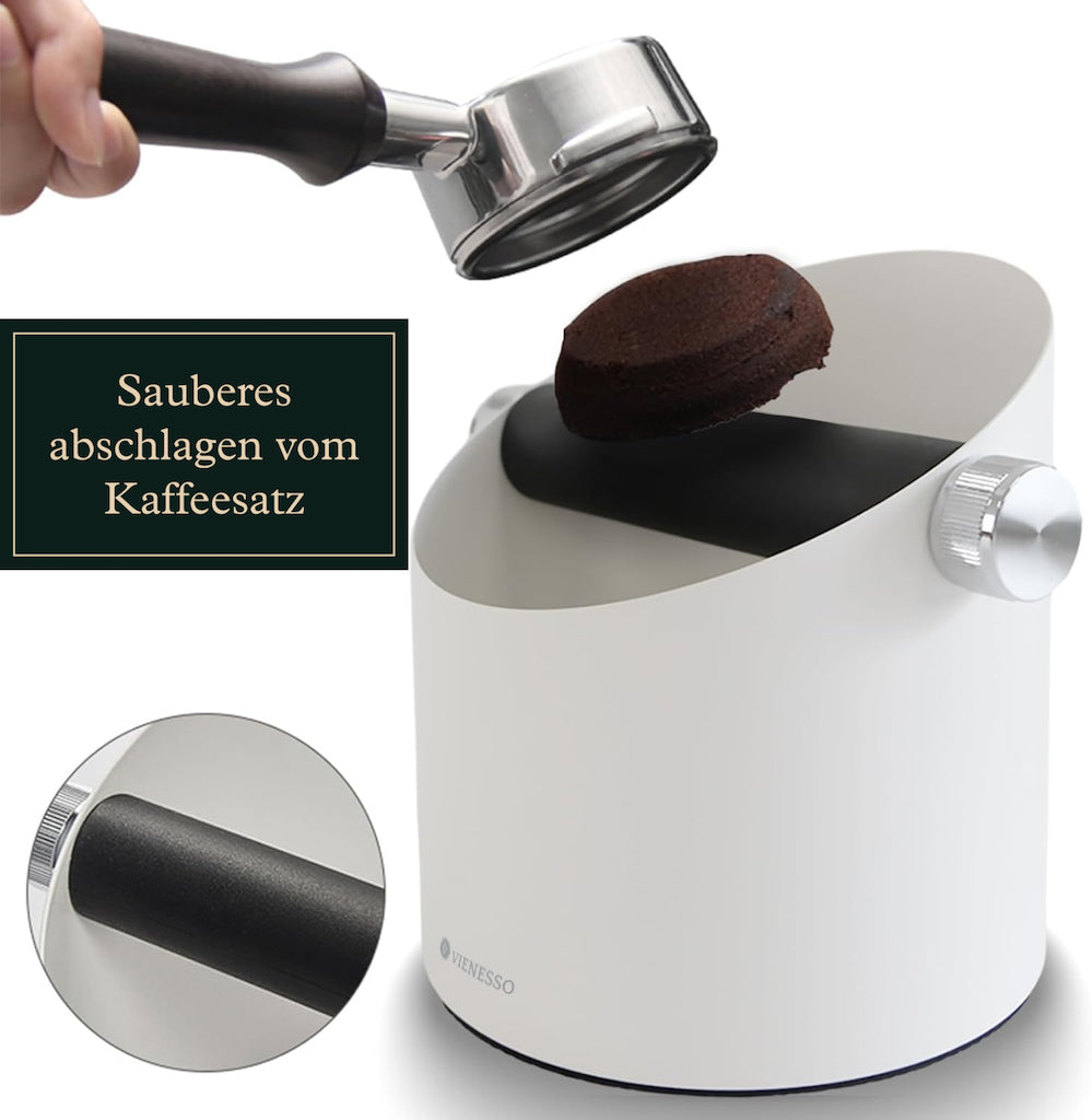 Genießen Sie Ihren Kaffee wie ein Profi mit dem VIENESSO Abschlagbehälter aus Edelstahl! Die abnehmbare Abklopfstange ermöglicht eine einfache Reinigung und die Knock Box fasst bis zu 15 Pucks. Hochwertiges Material und einfache Handhabung machen sie zum Must-Have für Heim-Baristas!