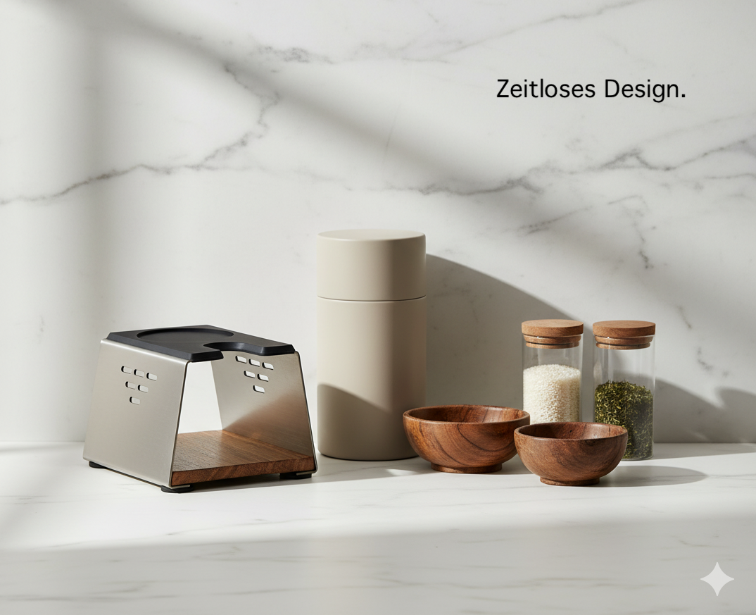 • Perfekter Schutz: Die Tamperstation schützt Ihre Arbeitsfläche durch das Andrücken mit dem Siebträger. Ein echtes Designerstück mit erstklassiger Verarbeitung aus Edelstahl, Holz und Silikon.